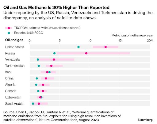 Los principales emisores de petróleo y gas del mundo (Estados Unidos, Rusia, Venezuela y Turkmenistán) representan la mayor parte de la discrepancia general, informó la revista científica Nature Communications. (BBG)
