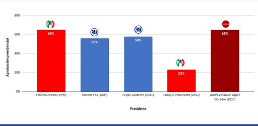 Zedillo tenía 65 % de aceptación en 1999... y el PRI perdió en 2000. Popularidad no es sinónimo de votación.
