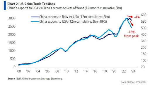 Las exportaciones chinas a Estados Unidos han bajado un 18% desde su máximo reciente.