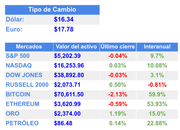 El director de la CIA, Bill Burns, presentó una nueva propuesta para un cese al fuego y un acuerdo para liberar rehenes, se ha reanudado la mediación entre Israel y Hamas en El Cairo, Egipto / Turquía ha anunciado que restringirá una amplia gama de exportaciones a Israel -incluidos cemento, acero y combustible para aviones- hasta que se declare un cese al fuego / Lleva México a la ONU quejas diplomáticas vs. Ecuador / Luego de romper relaciones México-Ecuador, la canciller ecuatoriana, Gabriela Sommerfeld, resaltó que fue México quien incumplió primero la Convención de Viena y la de asilo / “China es simplemente demasiado grande para que el resto del mundo absorba su enorme capacidad de producción”, planteó Janet Yellen en su última visita al país asiático / Muchos países que no fabrican vehículos eléctricos, baterías o paneles solares son los clientes predilectos de los chinos que son los líderes mundiales en “energías limpias” / China enviará su delegación de más alto nivel a Corea del Norte en casi cinco años para un viaje que comenzará el jueves y que se produce en momentos en que Pyongyang se acerca a Rusia / Oposición del Vaticano sobre el cambio de sexo y los vientres de alquiler / Taiwan Semiconductor Company (TSMC) -líder mundial en la producción de chips- anunció la construcción de una tercera planta en Arizona, Estados Unidos / Las marcas de lujos se siguen encareciendo, el precio de un bolso mediano de Chanel -por ejemplo- se disparó de 5,8 mil dólares en 2019 a 8,8 mil dólares / Jamie Dimon, director ejecutivo de JPMorgan, comparó la inteligencia artificial (IA) con inventos como la imprenta, la máquina de vapor y la electricidad en el último informe anual de la compañía y dijo que “las consecuencias serán extraordinarias” / Elon Musk pronunció el fin de semana pasado un discurso de 45 minutos en las instalaciones “Starbase” de SpaceX en el sur de Texas y habló de cómo hacer que la vida sea “multiplanetaria” / Científicos lanzan proyecto secreto de geoingeniería para limitar el calentamiento global, aumentando la cobertura de nubes para reflejar la luz solar lejos de la Tierra.