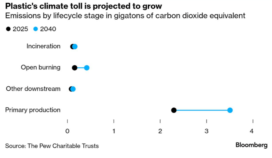 La producción mundial de plásticos sigue acelerándose pese a la evidencia abrumadora de su impacto ambiental y sanitario. Según el informe Breaking the Plastic Wave 2025 de Pew Charitable Trusts, la contaminación alcanzará 280 millones de toneladas anuales en 2040, el equivalente a un camión de basura descargando plástico cada segundo. En las negociaciones internacionales, los países productores bloquearon acuerdos para frenar la fabricación de nuevos plásticos, mientras las tasas de reciclaje permanecen estancadas. El escenario proyectado es preocupante: una producción 52% mayor, emisiones asociadas que llegarían a 4.2 gigatoneladas de CO₂ equivalente —lo que convertiría a la industria del plástico en el tercer emisor mundial— y un deterioro sustancial de la salud pública, con millones de años de vida saludable perdidos por enfermedades ligadas a la producción primaria, desde cáncer hasta males respiratorios.