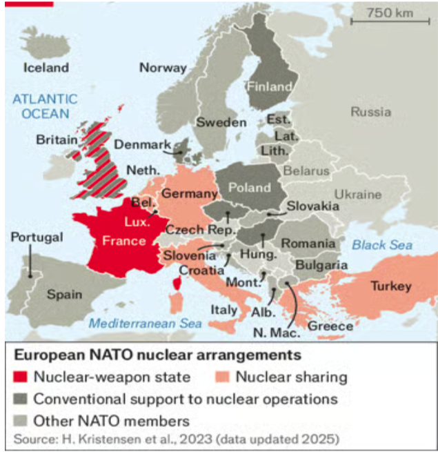 Reino Unido y Francia acordaron por primera vez coordinar el uso de sus armas nucleares. El anuncio se dio durante la visita de Estado del presidente Emmanuel Macron a Londres. Tanto Macron como el primer ministro británico, Sir Keir Starmer, declararon que cualquier “amenaza extrema” contra Europa requeriría una respuesta conjunta. El acuerdo representa un giro significativo para Francia, que hasta ahora se ha mantenido al margen del esquema de disuasión nuclear compartida de la OTAN. (The Economist)