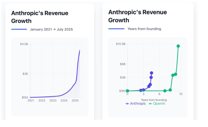 Anthropic tenía ingresos anuales de 1000 millones (1B) de dólares a principios de año y alcanzará los 4000 millones de dólares (4B) a mediados de 2025.