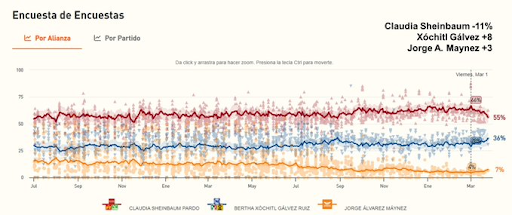 Encuesta Mitofsky/El Economista: Sheinbaum 60.1%; Xóchitl 34.2% y Máynez 5.7%. (ECO)