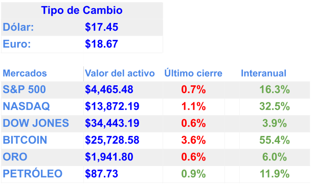 El regreso de la aversión al riesgo a escala global en los mercados financieros ante la posibilidad de una recesión y la mayor inflación volvieron a fortalecer al dólar frente a la mayoría de las divisas, incluyendo al superpeso. La divisa mexicana llegó el miércoles a 17.59 pesos por dólar al mayoreo, con lo que liga cinco sesiones de pérdidas, acumulando una depreciación de 5.2%.. (UNI)
