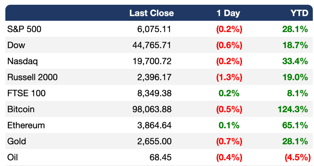 A semanas de asumir la presidencia, Donald Trump ya influye en la guerra en Ucrania, mientras Rusia y Europa compiten por moldear su postura ante la incertidumbre de un posible acuerdo / Las fuerzas rebeldes sirias avanzan hacia Damasco y Homs, poniendo en jaque el poder del dictador pro-ruso Bashar al-Assad tras la pérdida de Alepo y Hama/ La ofensiva sorpresa afecta a Asad en un momento en que sus aliados clave, Irán y Rusia, están demasiado ocupados con otros conflictos para brindarle apoyo significativo / El presidente surcoreano Yoon Suk Yeol enfrenta un posible juicio político tras perder el apoyo clave del líder de su propio partido, Han Dong-hoon/ El Departamento de Estado de Estados Unidos advierte sobre violencia en 30 estados de México, señalando a Campeche y Yucatán como los únicos seguros, y emitiendo alerta roja para seis entidades / La Unión Europea se dispone a cerrar histórico acuerdo comercial sudamericano / El tratado UE-Mercosur busca fortalecer el comercio birregional y diversificar mercados, aunque enfrenta críticas por posibles desigualdades en el sector agrícola y desafíos regulatorios / Invertir en un fondo indexado al S&P 500 puede superar el rendimiento promedio de los multimillonarios, gracias al poder del mercado estadounidense y su enfoque en el crecimiento /Donald Trump planea impulsar las criptomonedas y reforzar su ofensiva antimonopolio con dos nombramientos clave en su administración /Trump nominó al venture capitalist David Sacks (inversionista tecnológico destacado y cofundador de PayPal) para ocupar el nuevo puesto de zar de inteligencia artificial y criptomonedas en Estados Unidos/Bitcoin alcanzó los $100,000 impulsado por ETFs y el apoyo cripto de Trump, aunque persisten riesgos de alta volatilidad /Anthony Georgiades advierte que el reciente auge de Bitcoin es insostenible, citando especulación, reestructuraciones y posible corrección para el primer trimestre de 2025/ Proteger los cables submarinos de Internet es una pesadilla tecnológica / Las tecnologías como la IA impulsarán la creatividad humana, transformarán el desarrollo sostenible y redefinirán el éxito con un enfoque en propósito y misión.