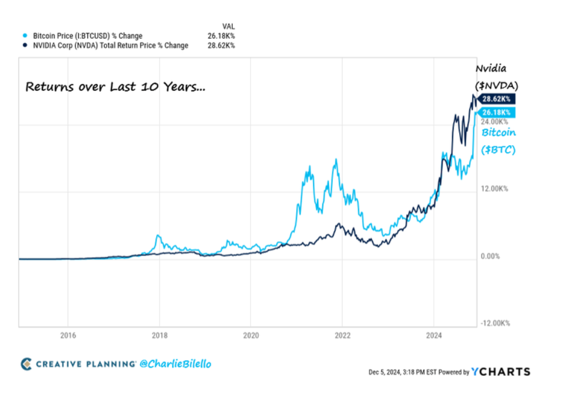Nvidia ha ganado un 28.620% frente al 26.180% de Bitcoin.