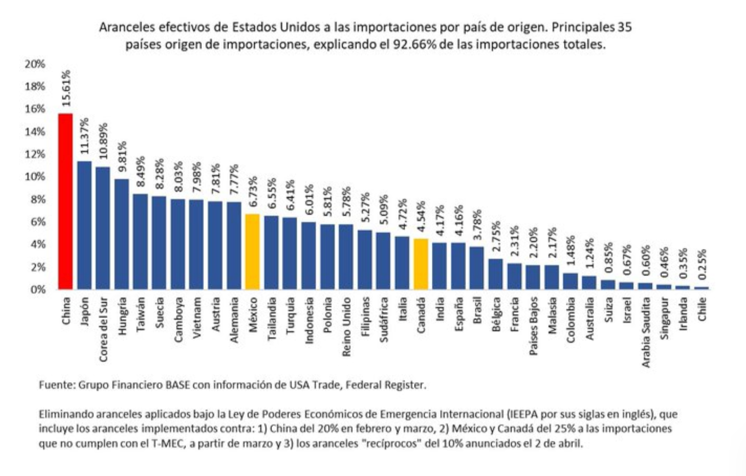 Así quedarían los aranceles efectivos por país, después del fallo del Tribunal de Comercio