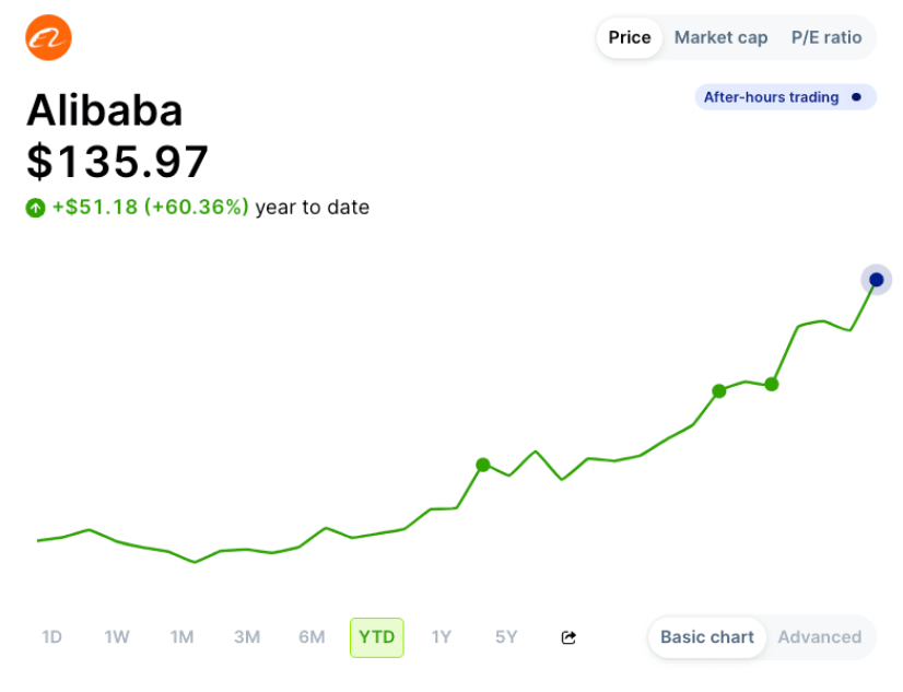 El sólido informe de ganancias de Alibaba (una recomendación de News Sensei, por cierto) impulsó su acción en Estados Unidos más de un 8%, elevando sus ganancias acumuladas en el año por encima del 60%. La compañía superó las expectativas en ingresos, utilidad neta y ganancias por acción, consolidándose como una de las principales apuestas en inteligencia artificial, superando a gigantes tecnológicos como Meta, Alphabet y Microsoft. Destacó el crecimiento del 13% en las ventas de su división de nube, reforzando su estrategia centrada en la IA. Además, la atención de los inversionistas aumentó tras la inusual aparición pública de su cofundador, Jack Ma, junto al presidente Xi Jinping, lo que añadió impulso a la acción.