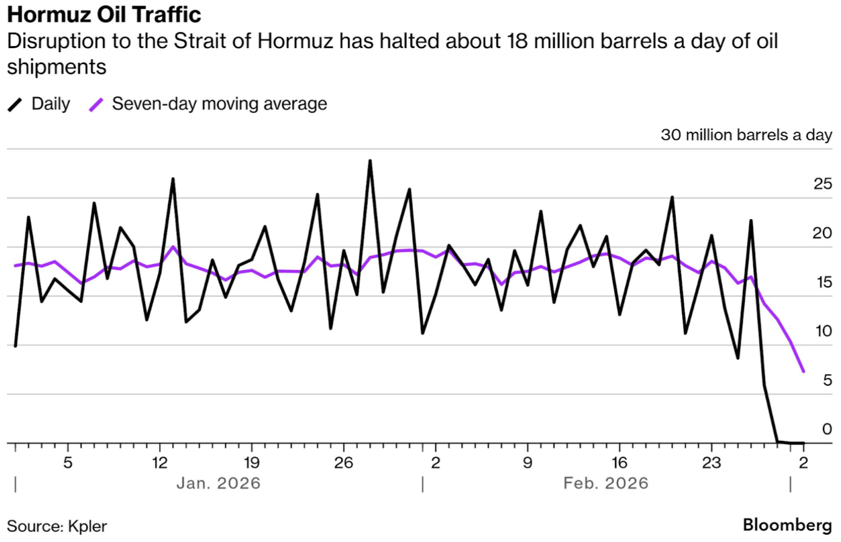 El tráfico de petroleros a través del estrecho de Ormuz, por donde fluye una quinta parte de la producción de petróleo, se ha paralizado prácticamente como consecuencia de la guerra con Irán.
