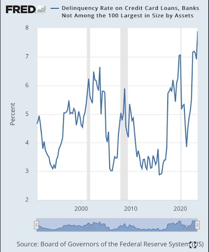 La morosidad en las tarjetas de crédito está en un nivel récord, superando los picos observados durante las recesiones de 2001 y 2008.