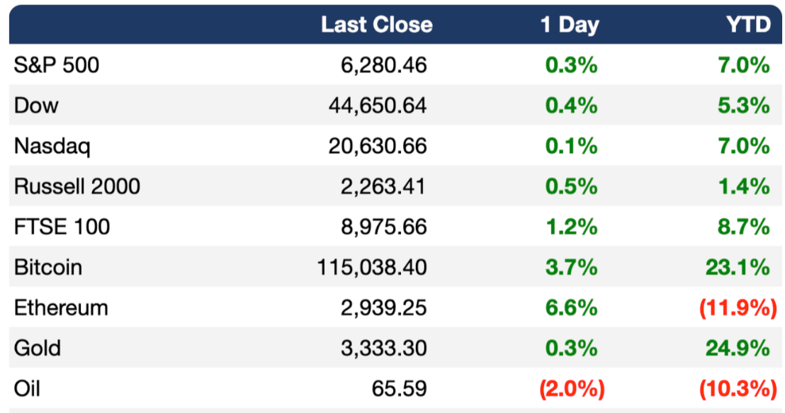 El repunte posterior a la fuerte caída de abril —provocada por los anuncios arancelarios del entonces presidente Trump— reforzó la lógica de "comprar en la corrección" (buy the dip). En ese momento, el pesimismo fue tan extremo (con fondos de cobertura netamente bajistas, salidas récord de capital y la confianza del consumidor en mínimos desde 2008) que bastaron algunas buenas noticias —como resultados empresariales positivos y una aparente moderación comercial— para encender el rally. Hoy, el mercado sigue sobrevalorado, pero sin señales evidentes de estrés sistémico. Como señalan analistas del Carson Group: cuando todos piensan igual, quizá alguien ya dejó de pensar. (ODB)