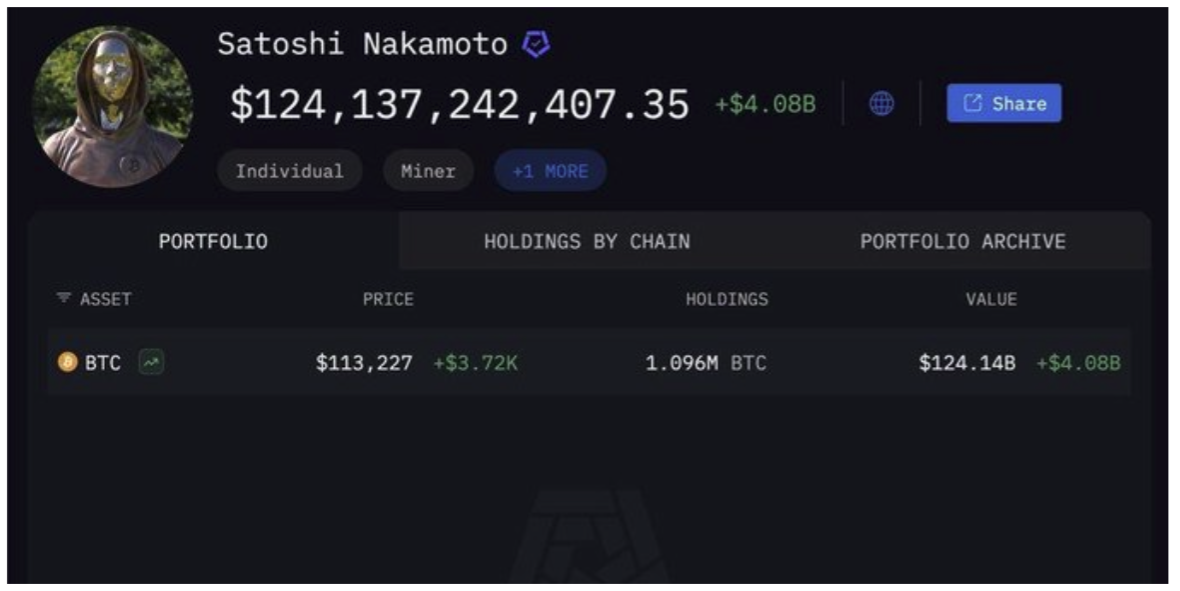 Con más de un millón de BTC intactos desde sus inicios, la reciente subida de precios catapultó el patrimonio neto de Satoshi a la estratosfera: