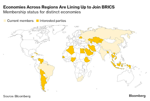 Casi dos docenas de naciones del Sur Global han solicitado formalmente unirse al bloque, y varias otras han expresado interés. El grupo no ha tenido nuevas admisiones desde Sudáfrica en 2010.