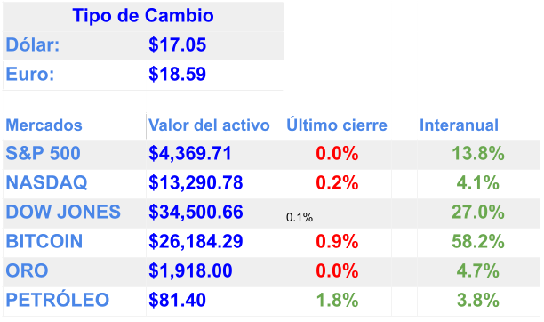 AP News (AP), Axios (AX), Bloomberg (BBG), CNBC (Consumer News and Business Channel), ContraRéplica (CRON), Decrypt (DC), Diario Nocturno/Eje Central (NOC), El Economista (ECO), El Financiero (FIN), El Heraldo de México (HER), El Sol de México (SOL), El Universal (UNI), Excélsior (EXC), Financial Times (FT), Fox News (FOX), La Crónica (CRO), La Jornada (JOR), La Razón (RAZ), Milenio Diario (MIL), Morning Brew (MB), Motley Fool (Fool), Ovaciones (OVA), Periodic (PER), Reforma (REF), Reporte Índigo (RI), Reuters (RT), The Block (TB), The Information (IT), The New York Times (NYT), Wall Street Journal (WSJ), y Yahoo Finance (YF).