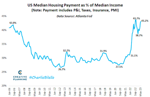 La asequibilidad de la vivienda en Estados Unidos es peor hoy que el pico de la última burbuja inmobiliaria.