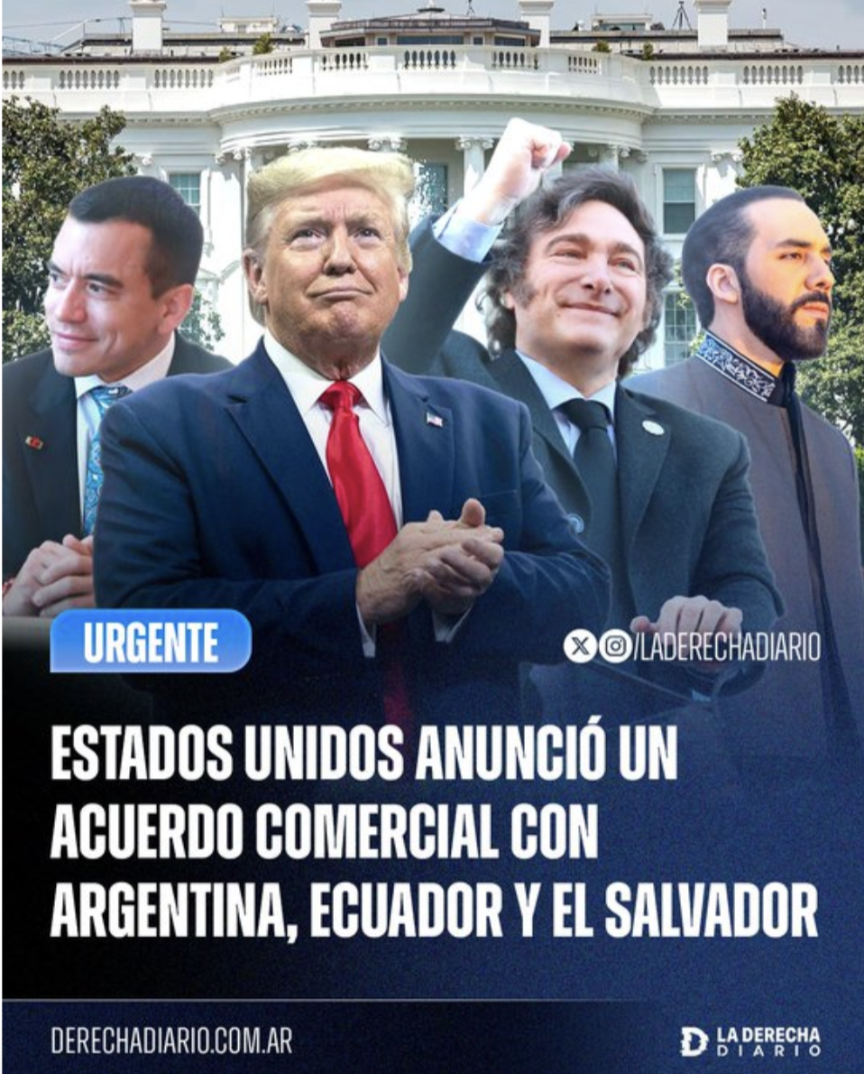 Estados Unidos anunció la inminente firma de acuerdos comerciales con Argentina, Ecuador y El Salvador, impulsando una alianza anticomunista entre Trump, Milei, Noboa y Bukele.